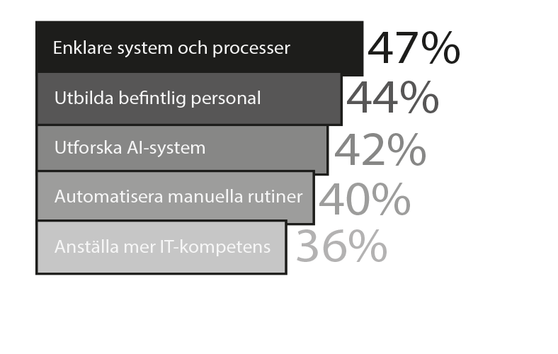 42 procent satsar på AI-verktyg av olika slag och 40 procent på att försöka automatisera manuella rutiner.