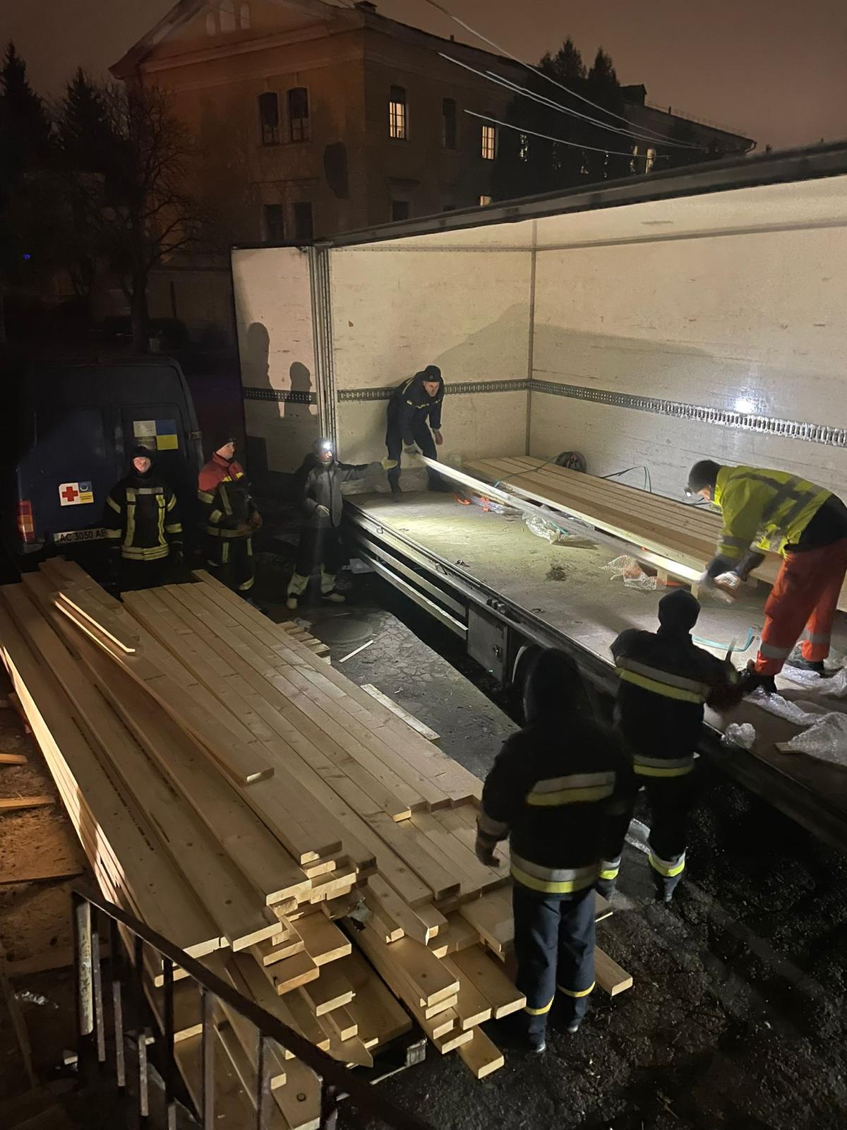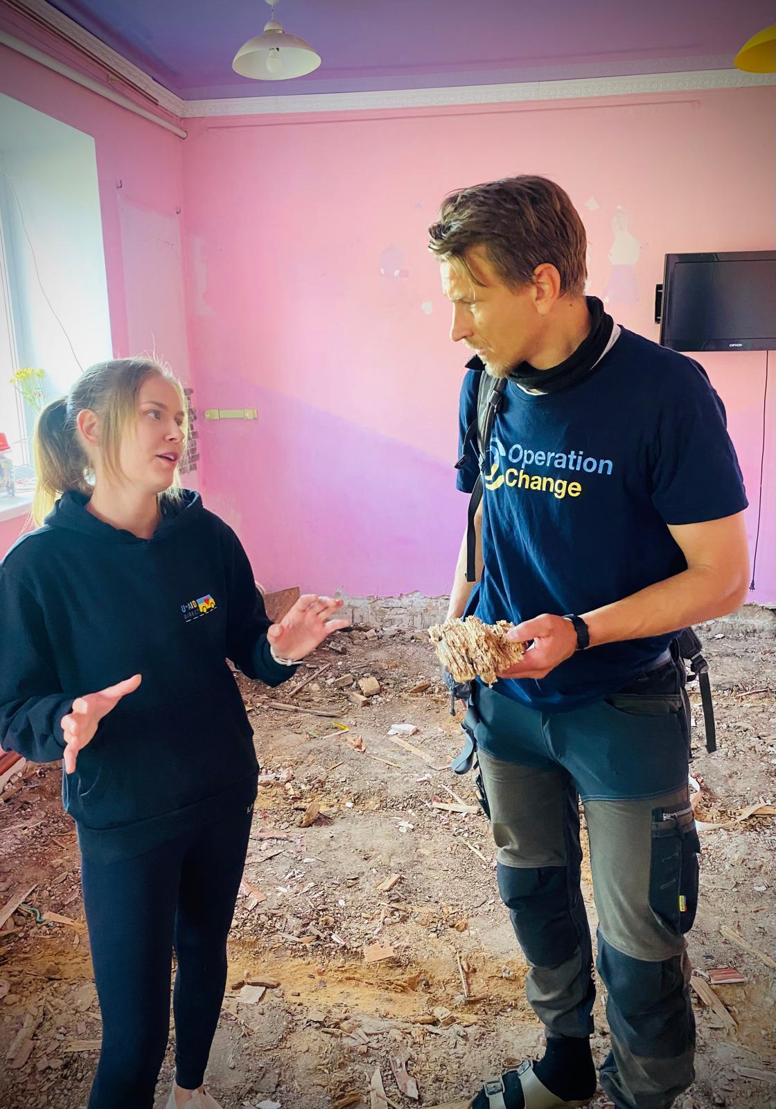Volontärer samarbetar på plats i Ukraina.